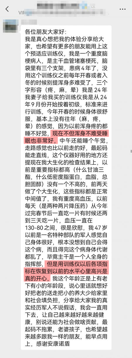 你的血管比想象中更需要“鍛煉”! 2025年中國心血管病報告顯示:每30秒就有1人因心梗/腦梗離世;80%猝死發(fā)生在"看似健康"的人群中;傳統(tǒng)體檢難發(fā)現(xiàn)血管內(nèi)皮功能異常。 更嚴峻的是,發(fā)病年齡正以每年0.5歲的速度下降,35歲以上人群頸動脈斑塊檢出率已達26.3%。 *圖片來源網(wǎng)絡 傳統(tǒng)被動治療模式也面臨雙重困境: 治療時間窗狹窄:心肌梗死黃金搶救時間僅120分鐘,腦卒中為4.5小時; 二級預防效果有限:支架術(shù)后1年再狹窄率仍達15%-20%。 *圖片來源網(wǎng)絡 90%的心腦血管發(fā)病風險其實可以主動預防! 因長期從事急性腦梗死早期治療和神經(jīng)保護研究,2020年入選為國家健康科普專家?guī)斓谝慌蓡T名單的首都醫(yī)科大學宣武醫(yī)院吉訓明教授表示: 缺血預適應的訓練,主要是用于卒中的預防和治療,通過定期訓練對心腦血管健康也有幫助。 安康諾盾預適應訓練儀可通過經(jīng)常對人體進行反復的、短暫的、無創(chuàng)傷、無危害的缺血預適應訓練,激發(fā)人體免疫系統(tǒng)的應急機制,從而達到預防心腦血管等疾病的發(fā)生。 使用過的用戶紛紛給出了好評并推薦給家人、朋友。 因內(nèi)容太多,我們從中節(jié)選出20位用戶的真實反饋,分享給大家: “頸動脈斑塊變小 血壓、血脂、血糖均正?!?/strong> “有效地改善血壓 提高睡眠質(zhì)量” “身體越用越輕松 血壓被控制好了” “失眠好了 血壓也控制好了” 想要查看更多的用戶真實反饋 請掃碼查看↓↓↓ 安康諾盾預適應訓練儀,守護您和家人的心腦血管健康。